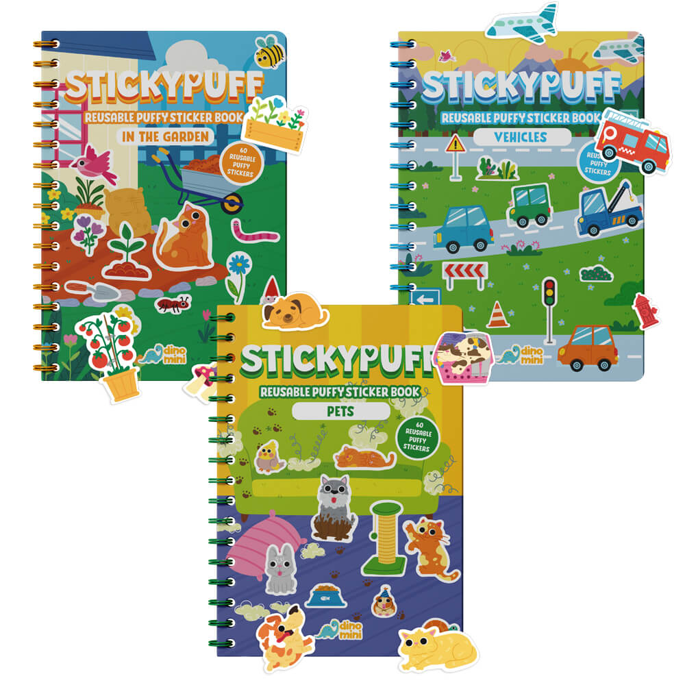 Bu avantajlı set Stickypuff Pets, Vehicles ve In The Garden kitaplarını içermektedir.